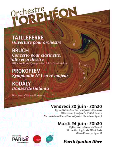 Notre deuxième série de concerts a mis à l’honneur la voix et le répertoire symphonique en abordant des pièces de la fin du XIXe, début XXe et XXIe siècles Ont été proposés d'abord une série d'airs tirés de l'opéra Icare l'héliotrope de la compositrice Christine Jeandroz. Cet opéra a été créé en 2008 sur un livret de Manuel Garcia-Reseco et retrace le destin funeste d'Icare, fille de Minos (dans l'opéra), dans un univers antique moderne et poétique. Les pièces du programme forment une suite orchestrale spécialement arrangée par Christine Jeandroz pour l'Orphéon ainsi que 3 airs tirés de l'opéra.