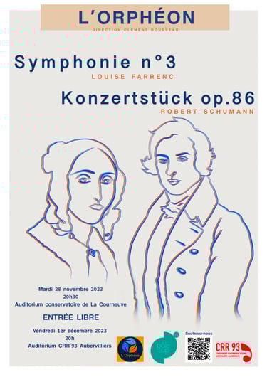 Pour sa première session, L'Orphéon s'est tourné vers un répertoire romantique, choisissant deux grandes œuvres trop peu jouées: la symphonie n°3 op 36 de la compositrice Louise Farrenc, et le Konzertstück pour 4 cors solistes et orchestre de Robert Schumann.